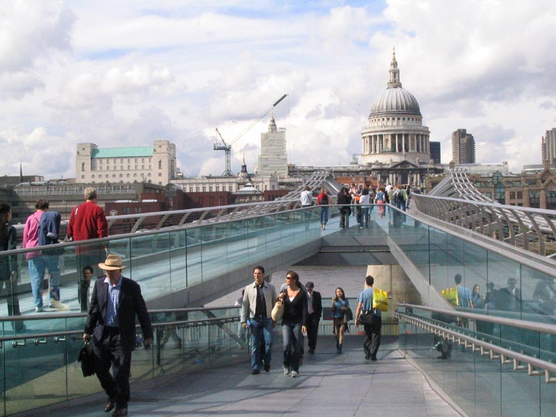 The bright light with the metal rods emating (2.3) is at the top of one of the spikes on one of the Hungerford Bridge footbridges. Behind the Billion Monkey guys (2.3) you see the drab old Hungerford Bridge for the trains which the footbridges have so lived up.