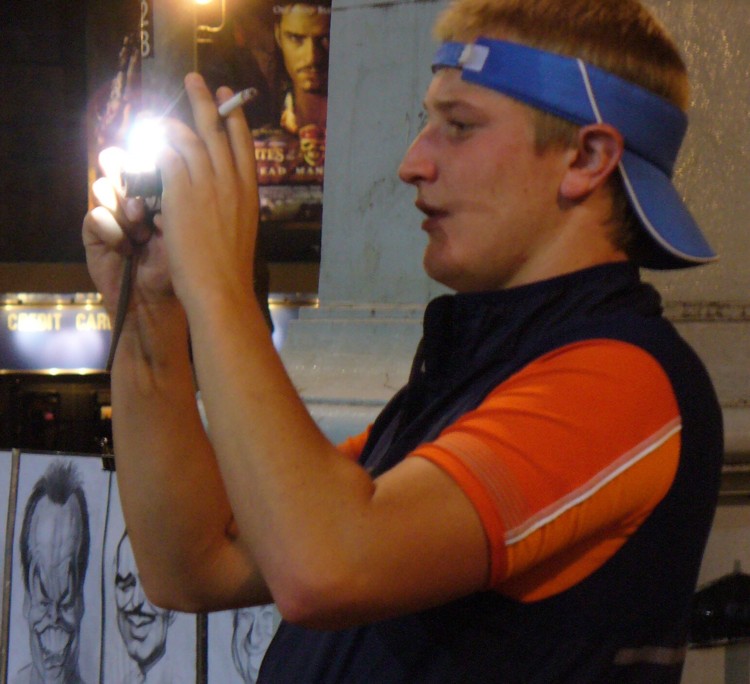 Out and about this evening in Leicester Square, snapping at a Billion Monkey, and once again I snapped at the moment he snapped, and he was snapping with flash!