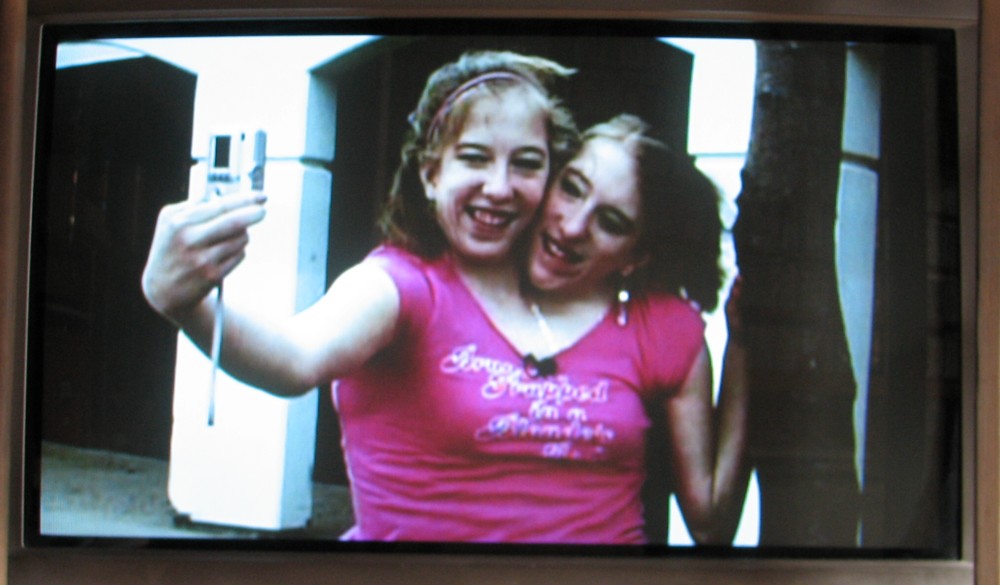 Earlier this month, I snapped a snap off the telly of Abby and Brittany Hensel taking a snap of themselves, for their driving licence(s). Abby and Brittany are the world’s only known dicephalus conjoined twins, and they were featured in “Extraordinary People: the Twins who Share a Body”, on Channel 5 on Monday February 19th.