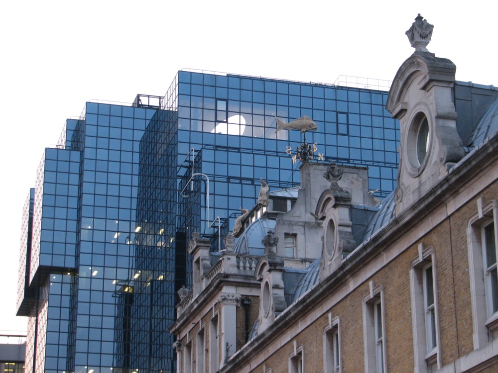 I’ve already shown pictures here that I took when I recently went to this part of London, of the Zong replica. Here are a few more that I took just after that. The first two feature the fish. Later we see the Millenium Bridge, the famous new footbridge which connects Tate Modern to St Pauls Cathedral. At one point you have to take a detour inland, around a building which doesn’t have a footpath between it and the river. Perhaps I should know shat that Church is, but I don’t.