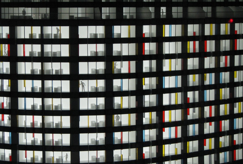 Quota photo time. This is a quirky detail of a photo I took the other day, of a shop window model of the new object that will replace the old object in the middle of the roundabout on the south side of Westminster Bridge. It’s those mysterious little people that I like.