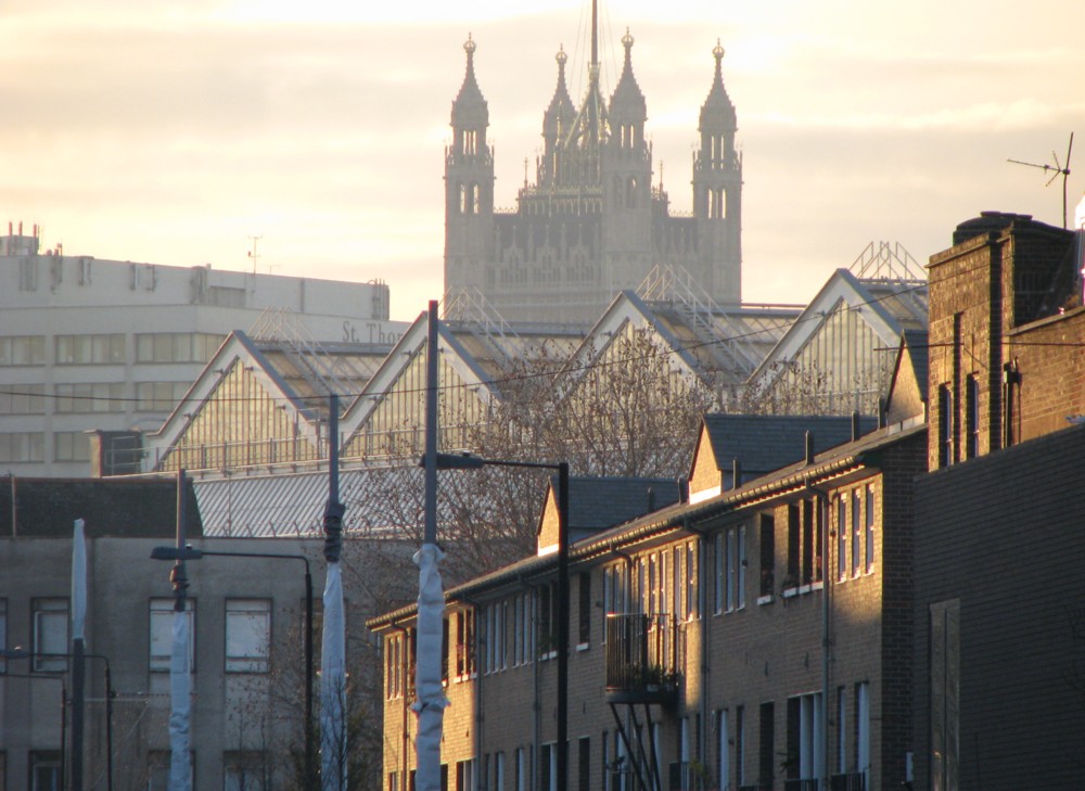 First, looking back along The Cut, towards Parliament, that being the four pronged Parliament tower, with the roof of Waterloo Station much nearer.