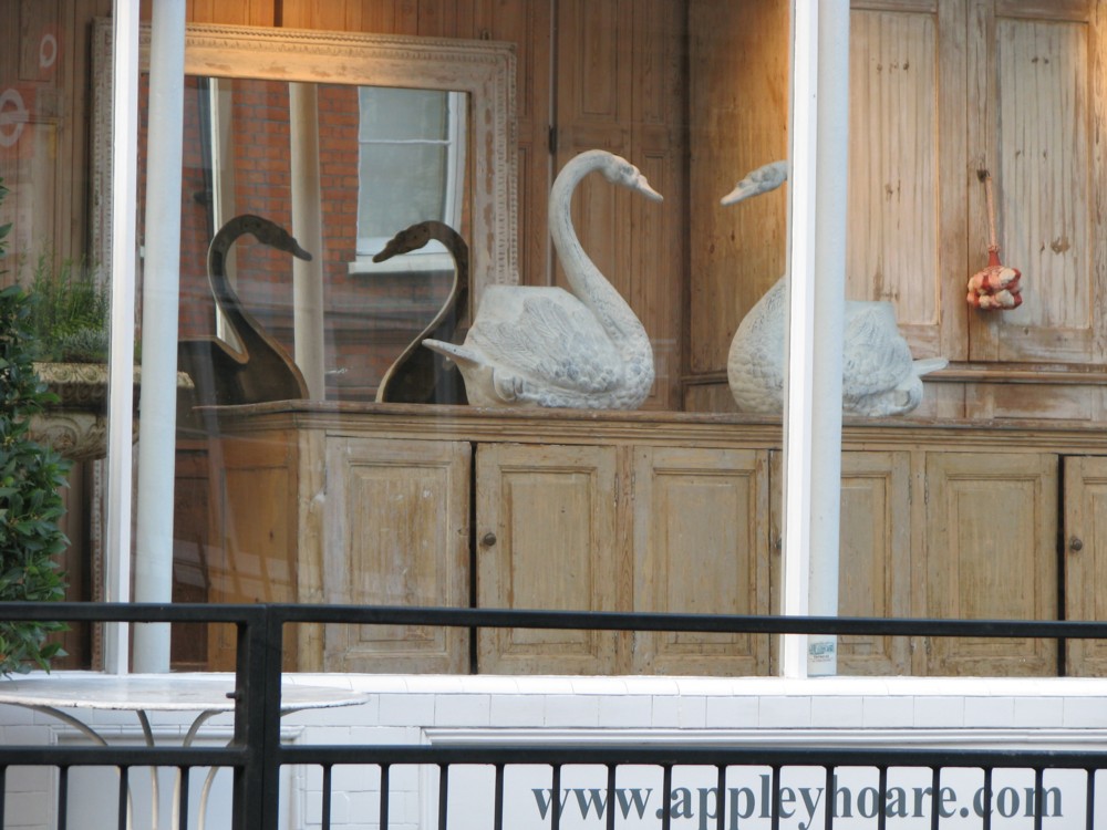 I particularly like that I got the shop’s website in the picture. Only fair. Rootle around a little, and you’ll learn that the swans cost £3,500. That’s each, I think. If you have to ask that sort of thing, they are too much for you.
