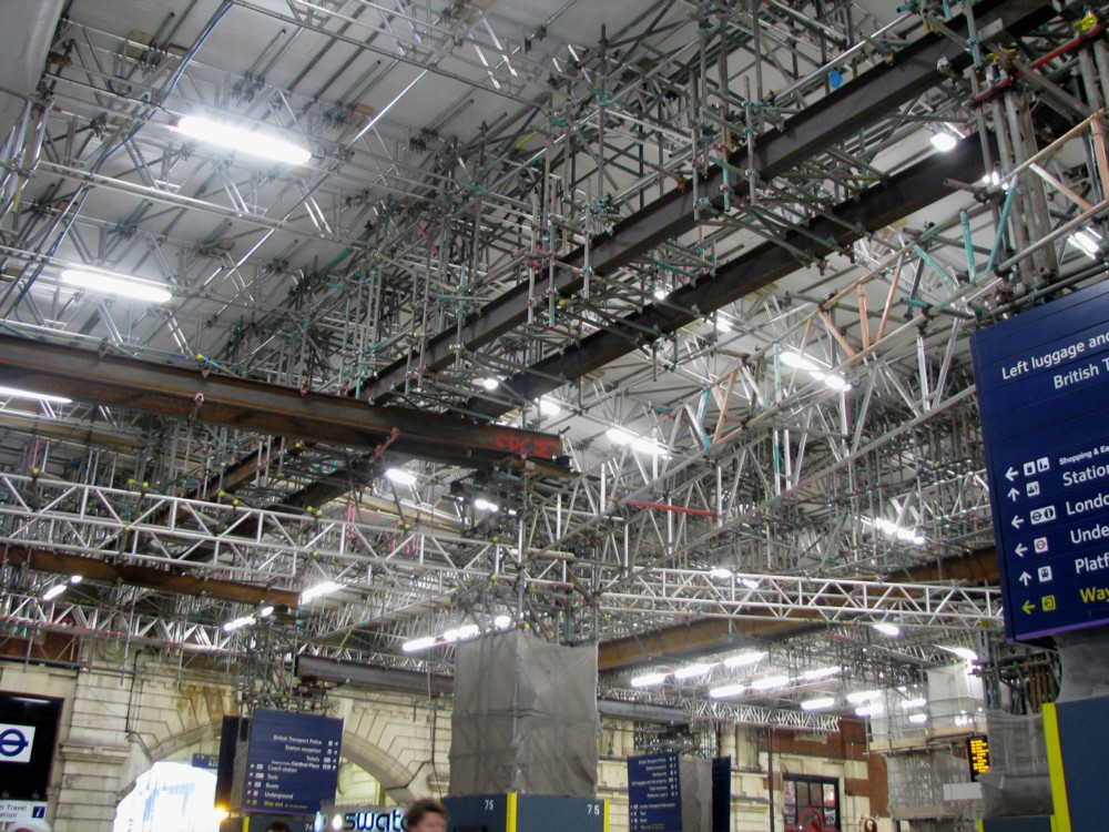 The other thing I noticed was how extremely much scaffolding there is at the moment under the roof at Victoria Station. I wonder why. Perhaps, what with the economic slump and consequent risk averseness of the building trade, they have just put it up there because it has to go somewhere. Well, probably not. Here’s what that looked like: