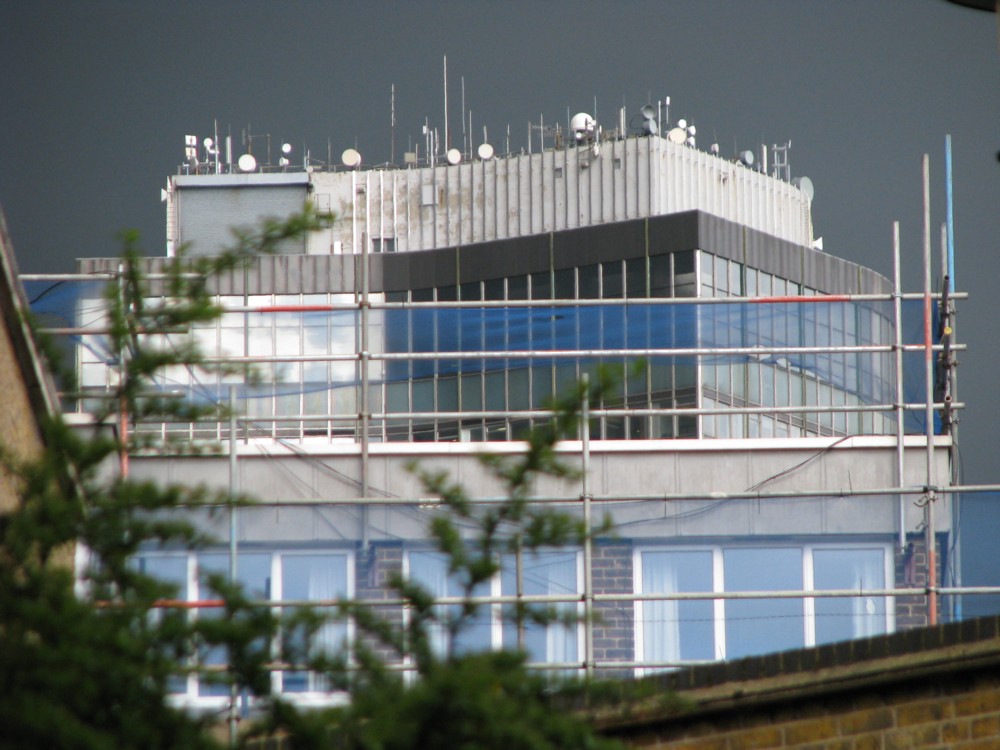 That’s the magnificently cluttered roof of Millbank Tower, evil Labour Party HQ. That’s the view of it as I step outside my front door. Also taken today.