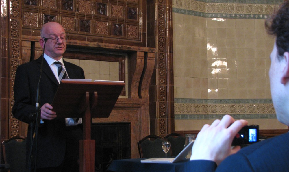 The reason I used a picture of Davies sitting down before he started talking for that Samizdata posting was that when seated he was utterly still and hence absolutely not blurry, and that when he stood, from where I was, he had a microphone shoved up in his face, as you can see in this: