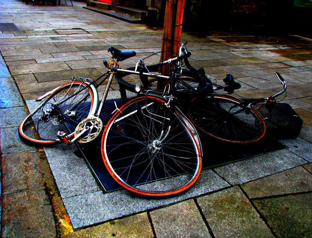 Top right: Me again, reflected in the headlight of a motorbike. Also cranes. Cranes are good. The same cranes as are to be seen in the crane cluster photoed here.