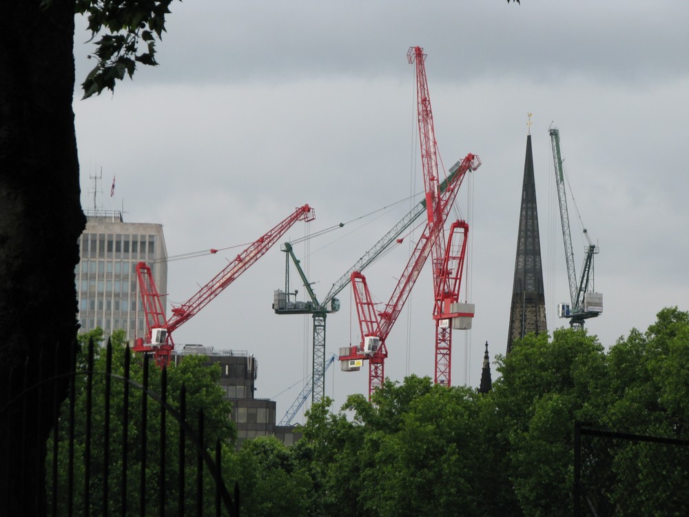 And here’s another kind of technological temporariness, in the form of cranes, seen from my corner of Vincent Square, looking diagonally across it: