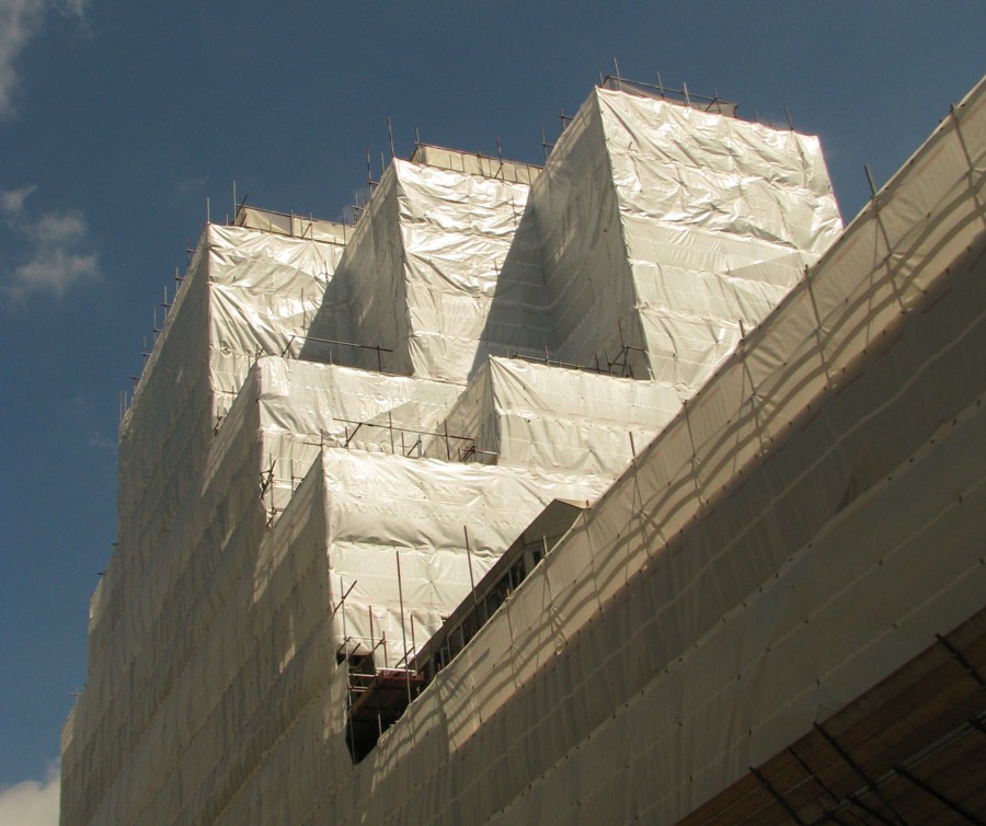 I can remember when wrapping a building up like this used to be Art. Now it’s just Essential Maintenance, of whatever: