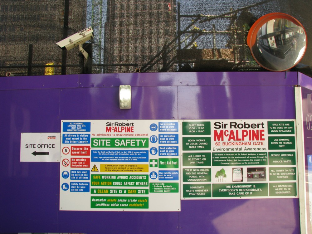 Top left: another Health and Safety Notice Cluster, this time associated with the big weirdness they are constructing next to Westminster City Hall. Note how greenness is, in addition to being greenness idiocy, is also the new language with which property owners say: don’t mess with our property. Fair enough. I am keeping an eye on this edifice as it grows. At present it is mostly just cranes. The me bit is in the round mirror top right. And of course there’s a surveillance camera. Where is there not a surveillance camera these days?