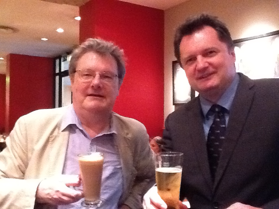 Bottom left: Me an Andy Duncan of the Cobden Centre generally (his latest CC blog posting) and Cobden Centre Radio in particular. He was doing some work in the Sloane Square area yesterday, so we met up there, for the sake of it and to ponder future CCR efforts. That picture was taken by the obliging young man behind the bar with Andy’s iPad, of which Andy is very proud. Click to get the original picture, 960 pixels wide. At that size, it becomes blurry, like the blurry flat screen telly that I now have. But the blurriness was good for me, because I have been having a Bad Face Fortnight, brought on, I think, by an ill-judged purchase of cheap nougat with too much sugar in it, of the wrong kind.