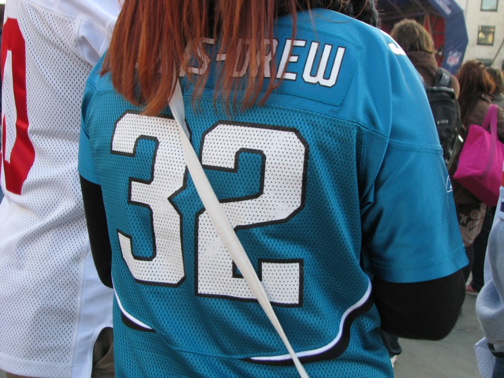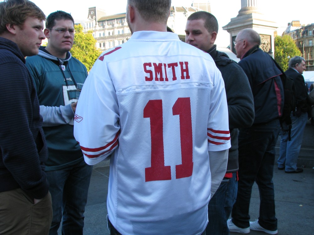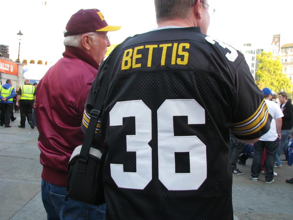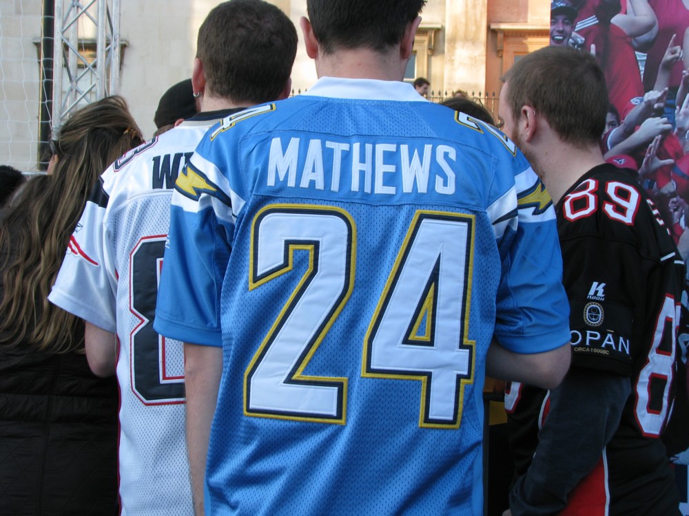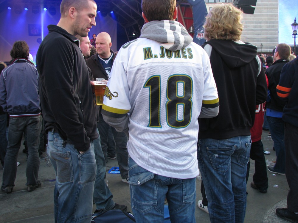 Having watched American Football on Brit TV over the years, I recognise most of those names. I don’t know if the shirts are chosen because you adore the Name in question and could bear to wear no other, or if you just pick a shirt that’s cheap and comfortable and still in stock. Even so, quite dramatic evidence of Brit NFL-ism, I think.