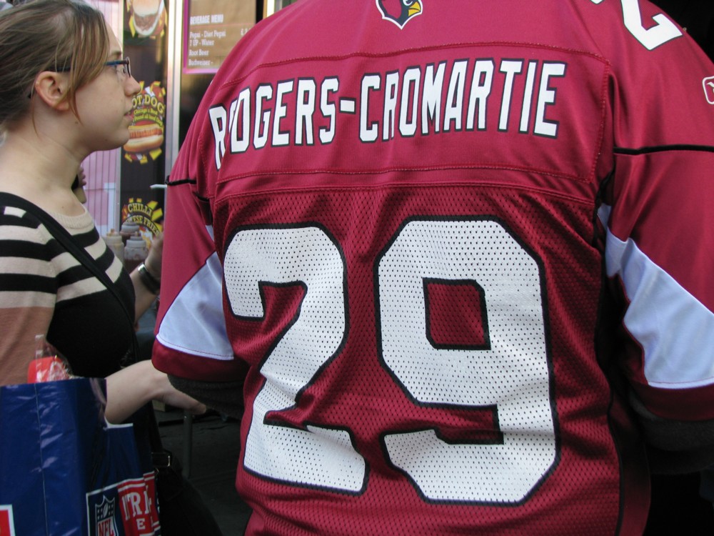 Generic shots - of the same thing over and over again but different every time - are my favourite sort. And I quickly realised that the thing that there were a great many of here, the same every time but different every time, was shirts with the names of NFL stars on the back, each with a big number. So that was what I hoovered up with my little camera.