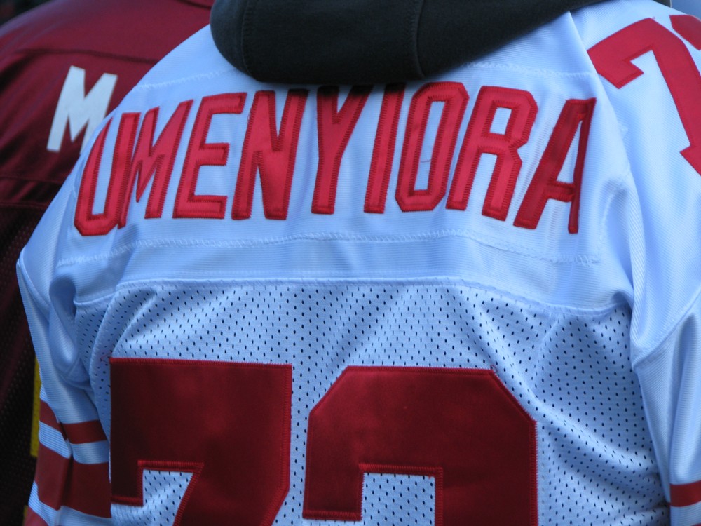Most of the “big pictures” are pretty close up, and give little idea of what the event as a whole was like, other than there being lots of fat blokes in numbered shirts present. Try Rice 80, Polomalu 43, or Urlacher 54, if you want to see something of the thing as a whole. Or hope that I will post more pictures of the event up at Samizdata, Real Soon Now.