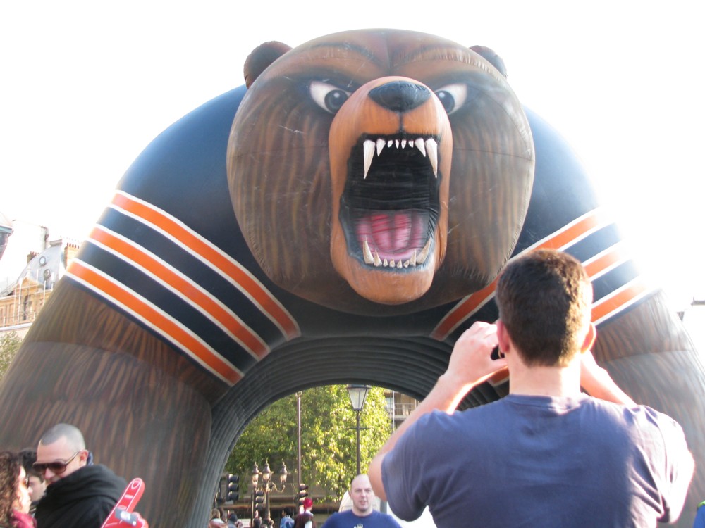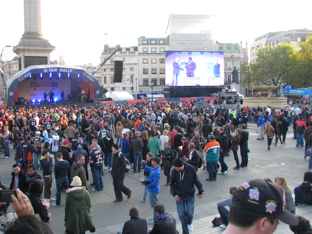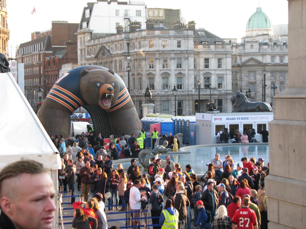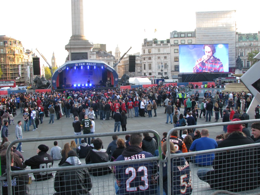 This was the NFL Fan Rally, happening a day ahead of the game between the Chicago Bears and the Tampa Bay Buccaneers, at Wembley, yesterday. Yes, really. The NFL exports one of its games to London every year, to fly the flag for their sport, in a foreign part.