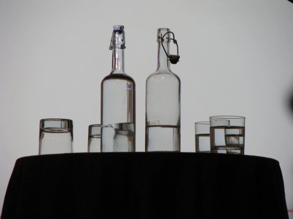 Right, seen that? Maybe while there, you also saw the little clump of glasses and bottles to the left as we look at Tooley. For quite a while I photoed them, instead of Tooley or his introducer, because, well, they just looked so much better, and were so much better lit: