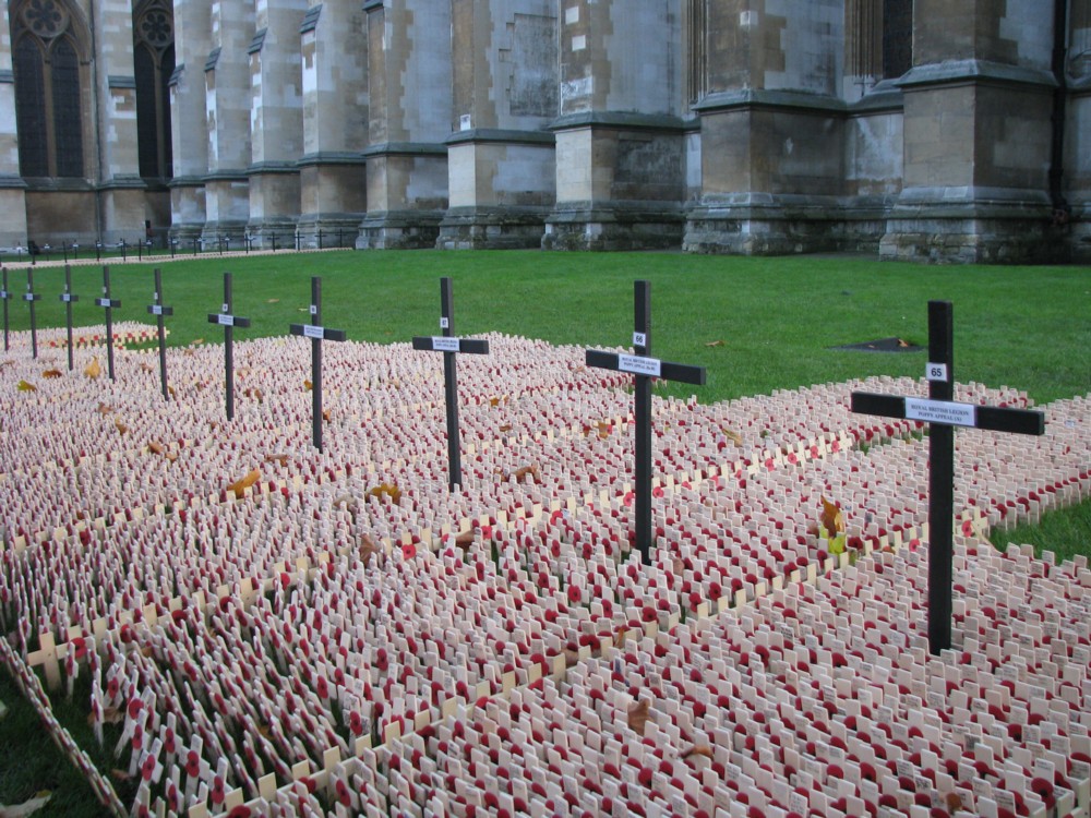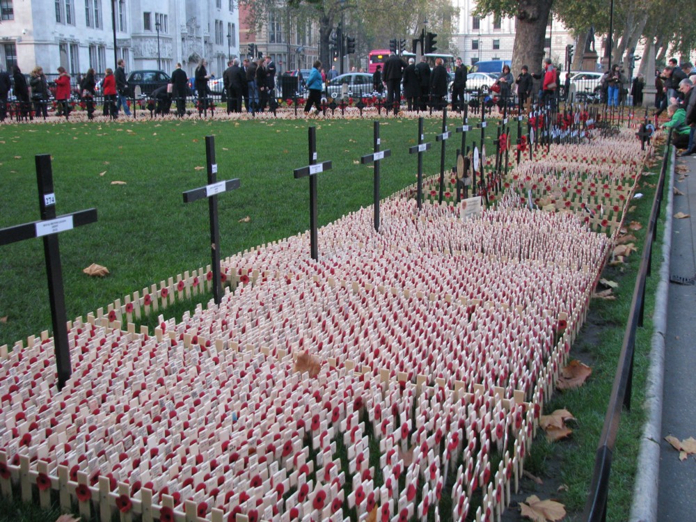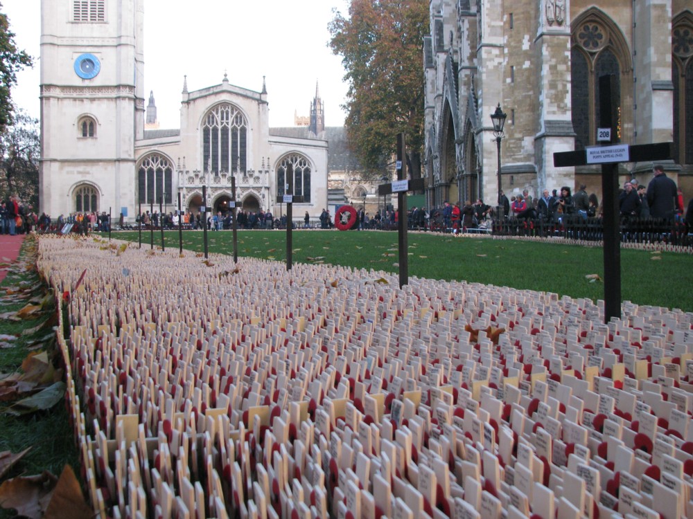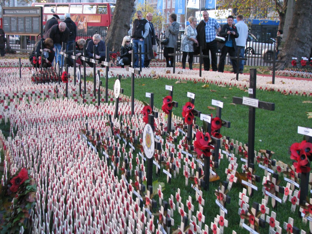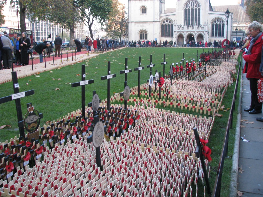 The weather in London has been very grey and grim of late, but today it brightened up, and I walked over to Westminster Abbey to take some topical photos of massed crosses commemorating dead warriors. Is it wrong to turn vast rectangles of small wooden crosses into photo opprtunities? I hope not. No disrespect is intended: