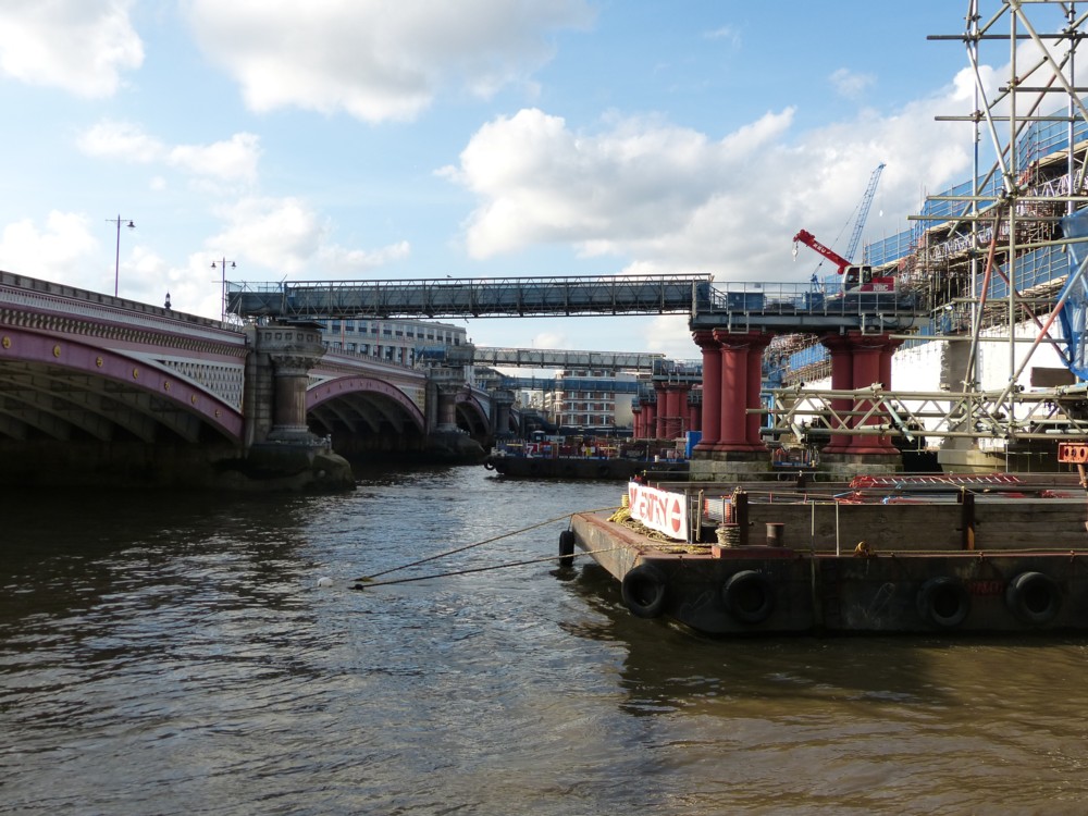 There is now much activity on and next to these columns, because, as already noted here, they are rebuilding Blackfriars railway station on the revised and still busy version of Blackfriars railway bridge, all the way across, with entrances on both sides of the river: