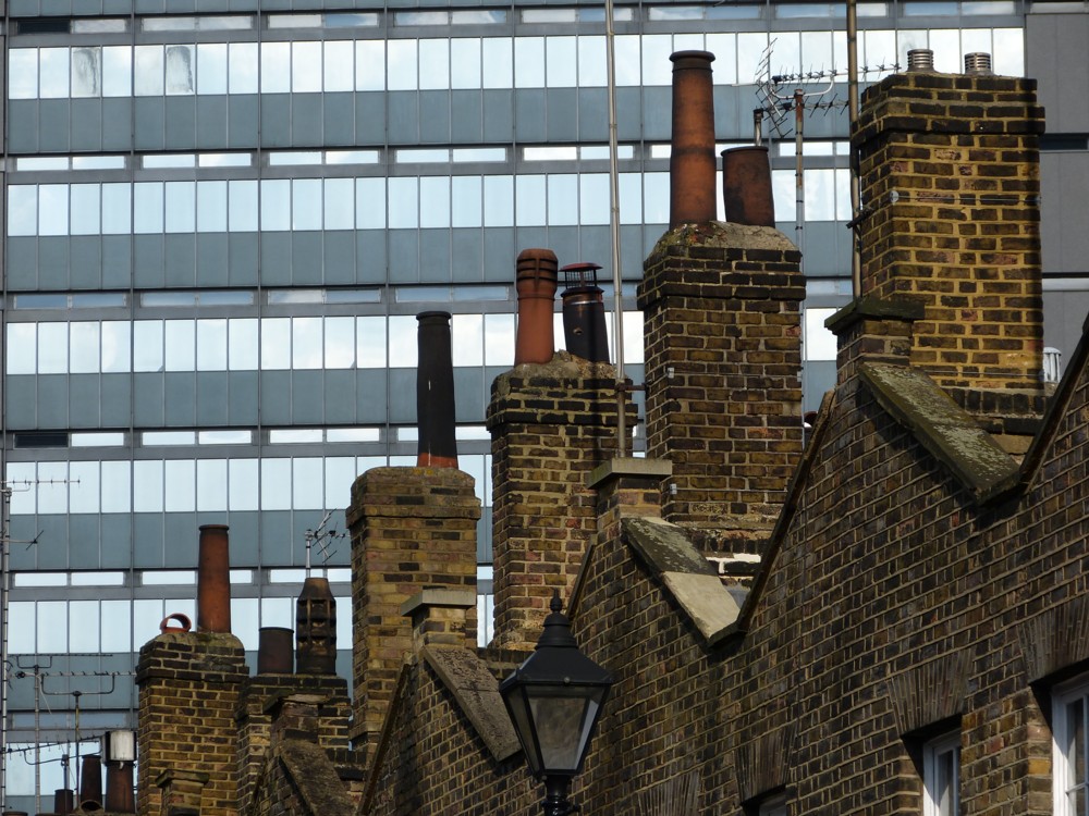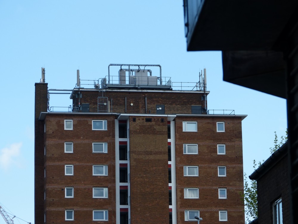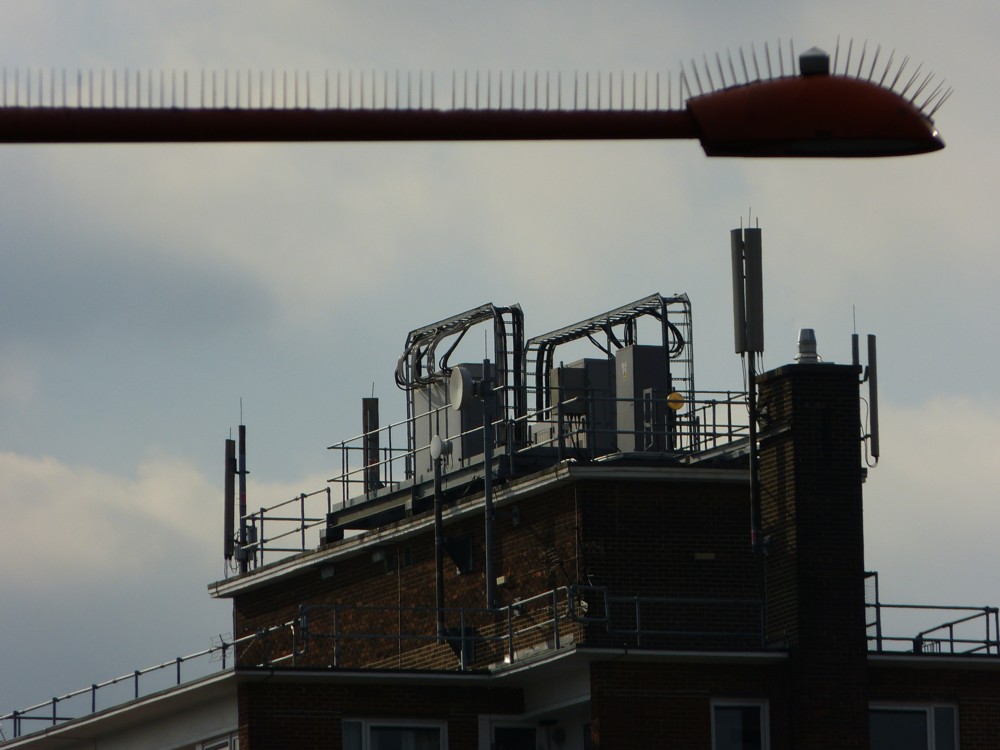 The thing about buildings is that when it comes to their facades, huge efforts are made to make them look just so. But on the roof, it seems you can do pretty much what you like. You can have a roof garden. You can have a clump of radio transmitters and radio receivers, for phones and suchlike. You can have stupid wind turbines. In former times, you could put whatever twiddly diddly spikes and spires you liked. Roofs are the aesthetic wild west, a visual anarchy.