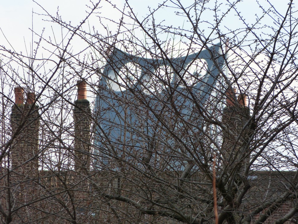 Much as I have enjoyed digging out and showing to you various London photos of mine that don’t feature any Big Things, the fact remains that my favourite of all my recent photos is of precisely one of these Big Things, seen through some trees: