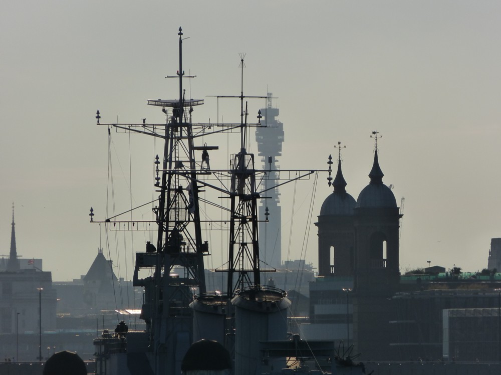 That’s the upper bits of HMS Sheffield Belfast, the Twin Towers of Cannon Street Station, and in the distance, the BT Tower.
