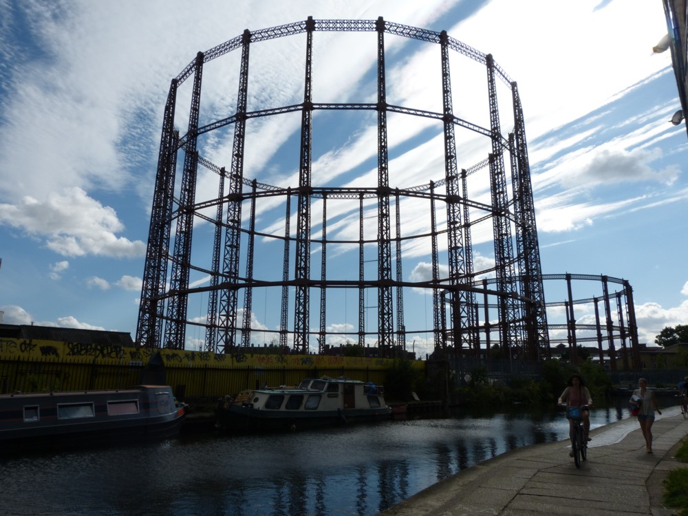 Taken by me yesterday, in North East London, across the Regents Canal, on a day when the sky was especially dramatic. But does anyone know how I can make those gasometers go straight up in the air instead of converging so violently? I use PhotoStudio 5.5. Just the technical term or the function I need to look for would help.