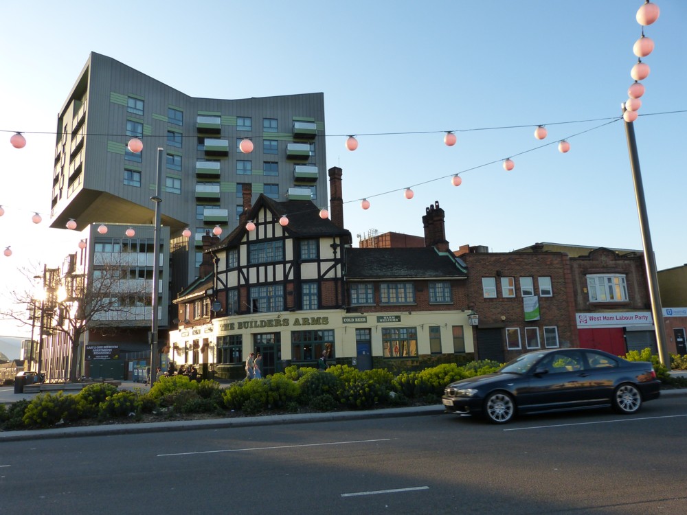 I wondered where exactly this is, and then I saw that three doors away from the Builders Arms is the West Ham Labour Party. So: West Ham. Although googling says it could be Newham, or Stratford. Eastenders land anyway.
