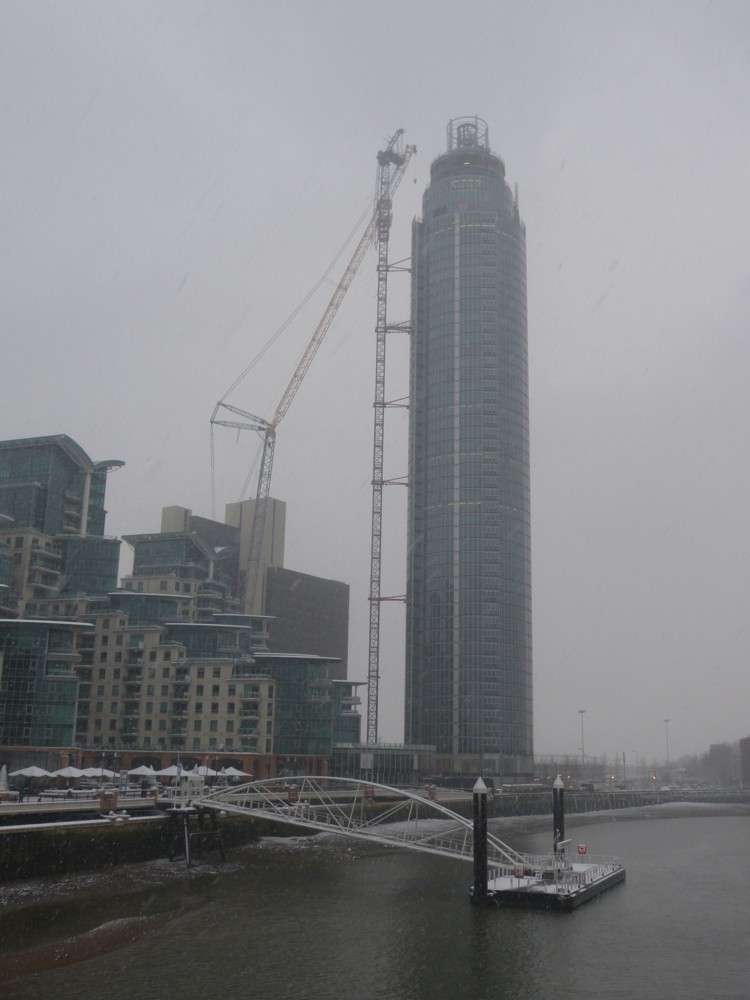 Yesterday I waited until it was nearly dark for it to stop snowing, but it never did and I went out anyway, back to see whether the new crane that I spotted last Friday on lorries was up and craning.