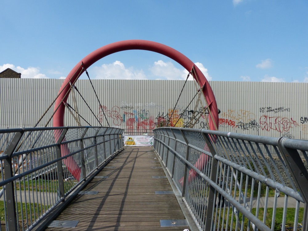 At the time, I thought I was photoing another bridge, which currently, as I recall, goes from nowhere to nowhere, but which will presumably go from somewhere to somewhere once they finish all that Olympic refurbishment. It turns out I was photoing graffiti.
