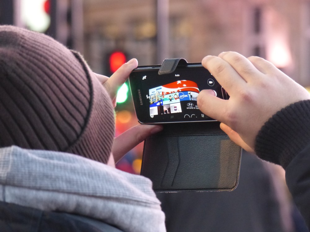 I say nothing, but here is a picture I took of someone in a woolly hat taking a picture at Piccadilly Circus: