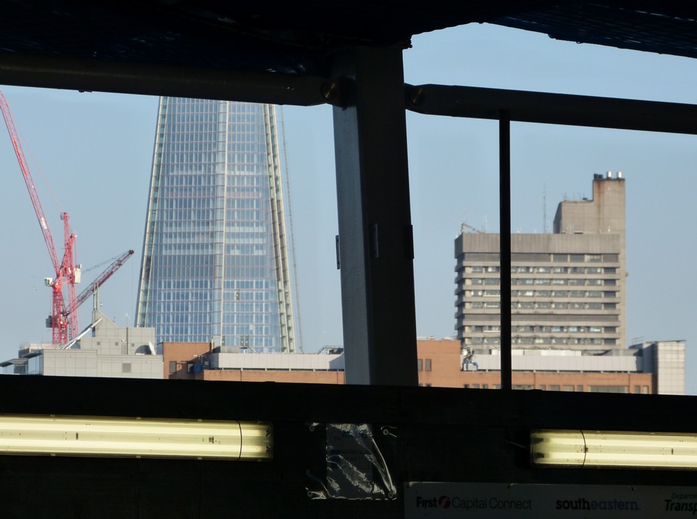 That’s a picture I took of the middle of the Shard and of the top of Guy’s Tower from Blackfriars Station (the one on the bridge) when both that station and the Shard were still being constructed, in 2012. I chose that picture because in it, the Guy’s Tower looks particularly ugly and bedraggled and stained and horrible.