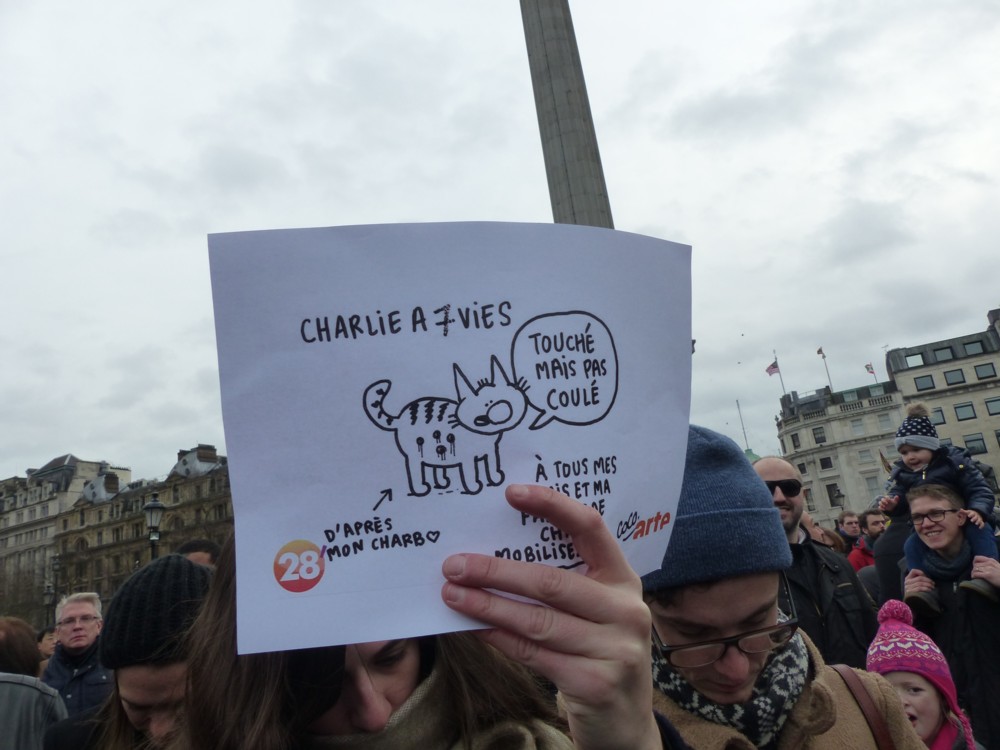 Meanwhile, another outing here for the only cat reference I saw at the Charlie Hebdo demo in Trafalgar Square last Sunday.