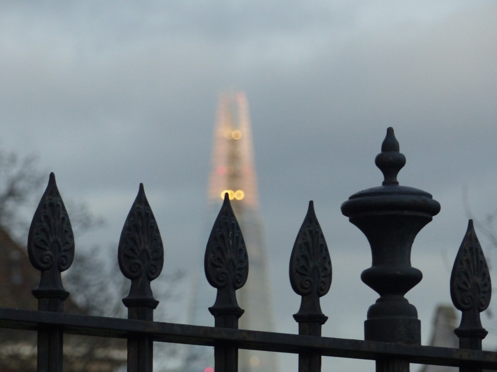 In the end, the only cock-up that early readers were subjected to was that in the heading, I at first put that the Shard was in front of the railings rather than behind them.