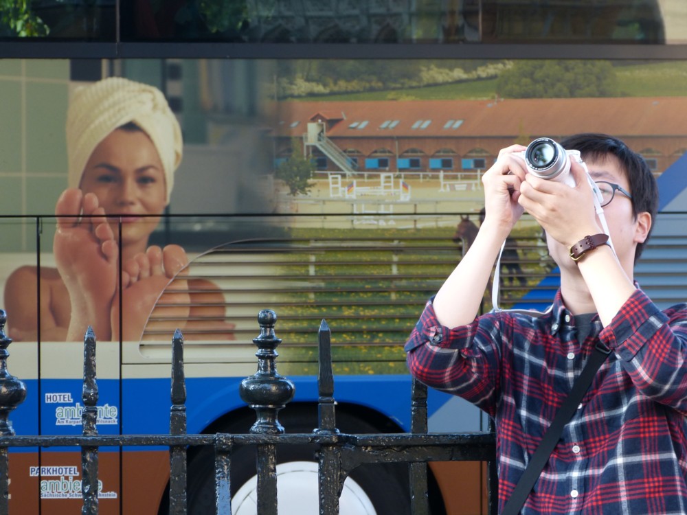 The more I photo, the more I find myself liking to take categories of photos, photos in sets. At first, my photos of photographers were just photos of photographers. But soon I was subdividing that huge category, into photographers taking selfies, photographers looking at the photos they’d taken. Recently I have found myself making further subdivisions, often of photos I have been taking for some while but which I had not been putting into a separate category in my head, if you get my meaning. So, above, in addition to all the photos of photographer’s camera screens, we see contributions to the photographers taking selfies category (subdivision: couples taking selfies), to the photographers looking at the photos they have just taken category, but also a good addition to the bald blokes taking photos category, and two for the photographers with interesting hats category.
