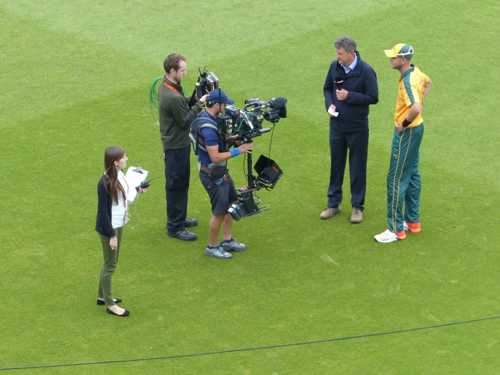 That’s a picture, taken moments later, of Sky TV discussing that Surrey first innings with Notts fast bowler and recent England Ashes hero Stuart Broad. What did Broad say? I don’t know. I wasn’t watching this game on my telly. I was merely there.