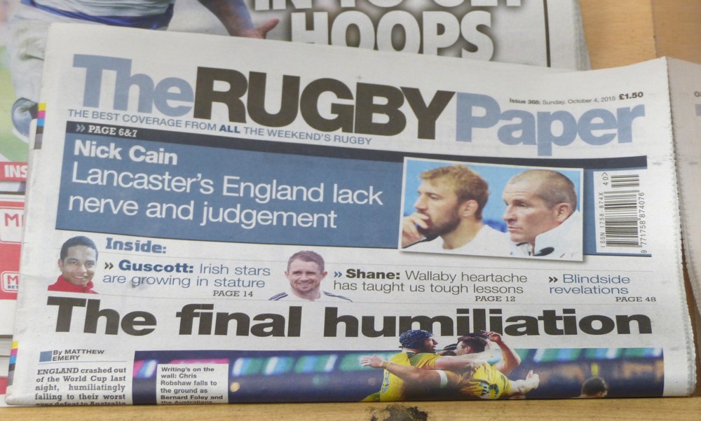 England got dumped out of their own Rugby World Cup last night. Not having had any great hopes for England this time around, I was not that distraught, but I do regret this. I have nothing original to add to what all the proper commentators are saying.