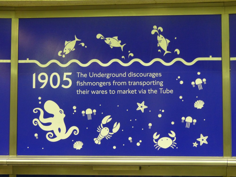 Next to the ticket barrier at Southwark tube there are a number of these little history lessons, of which this was my favourite. This is the kind of thing you can usually chase up quickly on the internet, and find a fuller account of. But, my googling abilities are such that I can find no reference to this fish-discouragement story. Anyone?