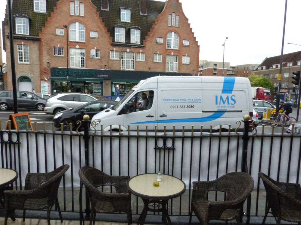 I tried to take photos out of the bus, but the best seats, at the top at the front, were taken. I had to sit right at the back. But, in the vicinity of the Elephant and Castle, I did manage this: