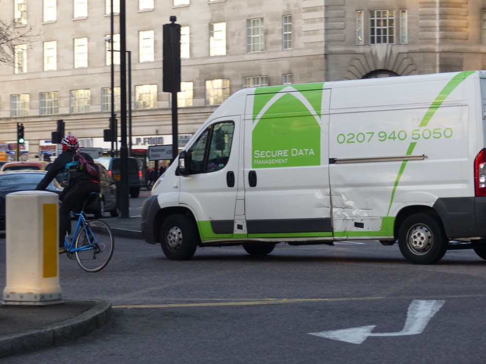 I know, I know. You can’t really make data insecure by damaging the van on which it says “secure data management”. This is the enterprise in question. Look at where the green lines cross the phone numbers, and you will see that, in the picture there, it is not the same van. So, they have more than one van. And by the look of it, what these vans do is transport documents. Nevertheless, this blemish suggests a certain sloppiness, or maybe I mean a certain willingness to seem sloppy, that does not sit well with handling data securely. If I was them, I’d want it sorted soonest.