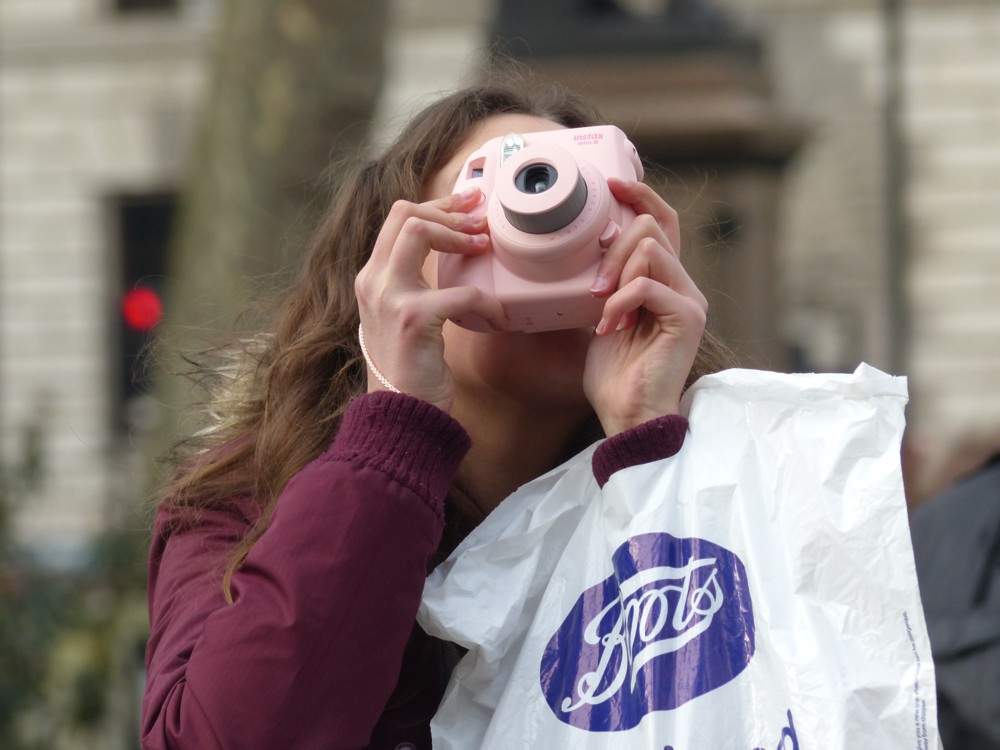 I am continually on the photographic look-out for many things, more and more things as my photographic activities have continued. Two of these things are: rather surprising selfies, usually reflected in something not completely obvious, like a motorbike or someone else’s sunglasses, or perhaps pictured on someone else’s camera; and: ways of taking photos of people without showing their faces, such as with their face hidden behind a camera, or behind a scarf worn over the face on a very cold day.