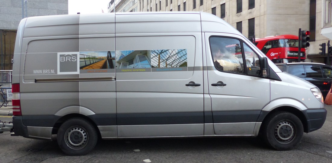What got me photoing this van was not any long word on it, for there are none. No, what got my attention was how amazingly posh this van looked. Amazingly posh like one of those amazingly posh magazines about Design, two-thirds full of posh car, posh frock, posh watch and posh property adverts. Goddaughter 1, if she sees this, will surely be delighted. The market for aesthetically sophisticated architectural photography (which is what she mostly does for a living) has now spread to the sides of vans.