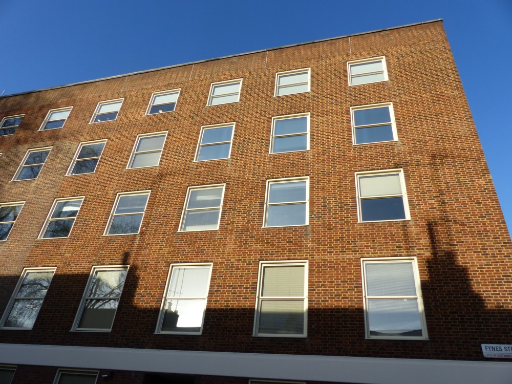 On the right you can see the mirror that the photo was taken into. Okay, a mirror. Boring. But not this mirror, because it was a mirror above us. The building sporting this mirror is a recent and, I think, rather ungainly addition to Victoria Street, but the mirror is fun. At least the jagged edge thing from which the building takes its name - “Zig Zag” - doesn’t cut into the pavement but instead hovers above it.