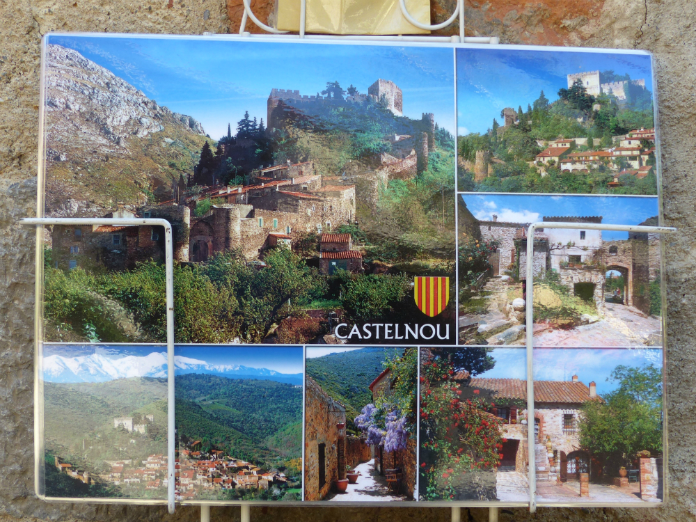 Well, I do take my own photos, a ton of them, and many of them look extremely like the ones in this photo of a clutch of photos. But what I learn from these picture postcard pictures is what in, in this case, the small historic town of Castelnou is considered by all the others who visit Castelnou to be most worthy of photographic attention. I may agree. I may disagree. Either way, I consider this to be interesting information.