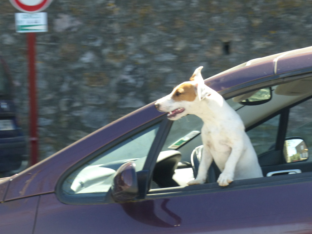 Here is a dog picture I took in France that I rather like. Okay it’s a bit blurry, but the car was wizzing by, and I tracked it by swinging my camera round to follow it: