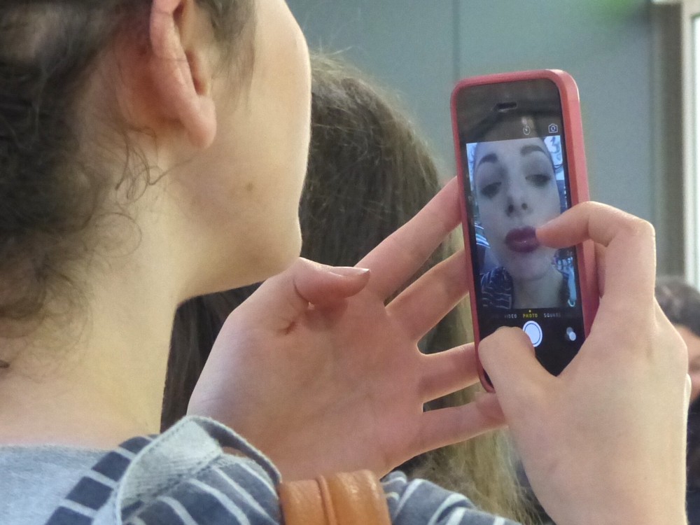 If you photo someone looking in a mirror, they can see their face, but you can’t. (Unless it’s a crap movie, in which case the audience sees the face and the person with the face doesn’t. I know. Ridiculous. But this is truly what often happens.) But, if you photo someone using their smartphone as a mirror, both you and they can see their face.