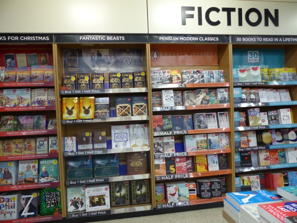 All the Penguin Modern Classics that they are selling occupy just the one alcove. Thirty books to read in a lifetime, one alcove. And Fantastic Beasts, one alcove. The J.K. Rowling juggernaut rumbles on.