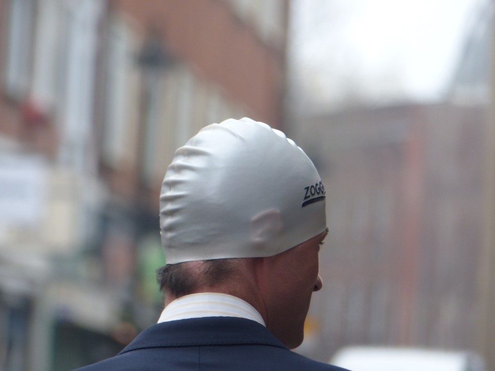 This morning I was out and about in the greyness and gloom of Victoria, and the more entertaining things I saw was this guy, wearing a suit. And a swimming cap. He was talking with a guy wearing a Santa elf hat, outside a pub, and inside the pub was a table full of more guys in strange headgear. Mr Swimming Cap and Mr Elf had to be part of that. Some kind of office or re-union pre-Christmas get-together, presumably. With a strange headgear theme.
