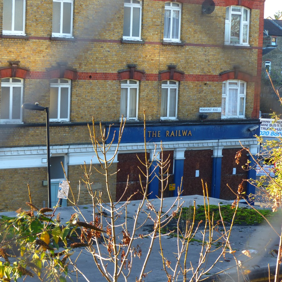 Yes, The Railwa. I had continued my odyssey from Seven Sisters on the regular railway, to White Hart Lane Station. And from the platform, and then when I got outside, this was what I saw. The Railwa: