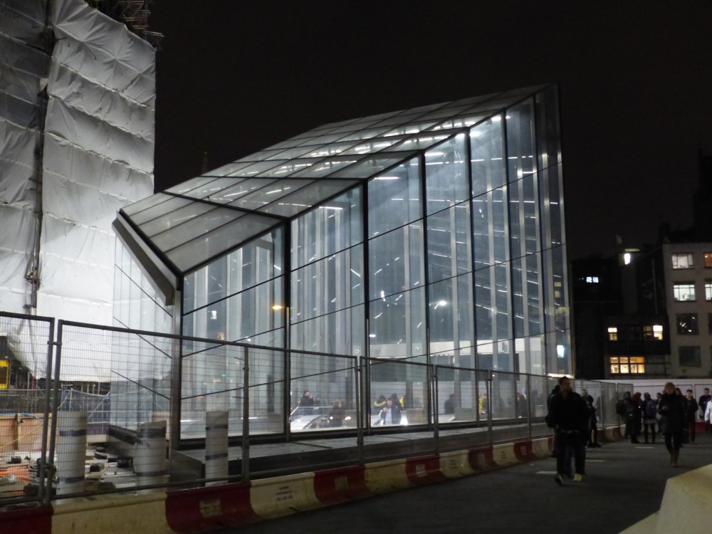 My official purpose was to find out what stage the new US Embassy has got to (1.3). But I also like 1.2 and 2.1, because they feature bright lights, looking almost as bright in my photos as they did for real. 3.3 features a view of the next door tower block that I hadn’t noticed before, flanked rather pleasingly by chimneys.