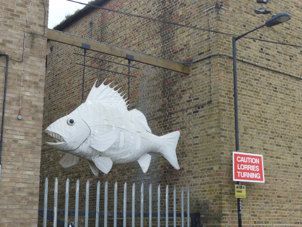 I encountered this fish in Orchard Place, last Sunday. Orchard Place is the road you need to walk along if you want to check out Container City, which is what I was doing at the time. To find Orchard Place on google maps, and to satisfy yourself that we are both talking about the same Place, got to Canning Town tube station and go south.